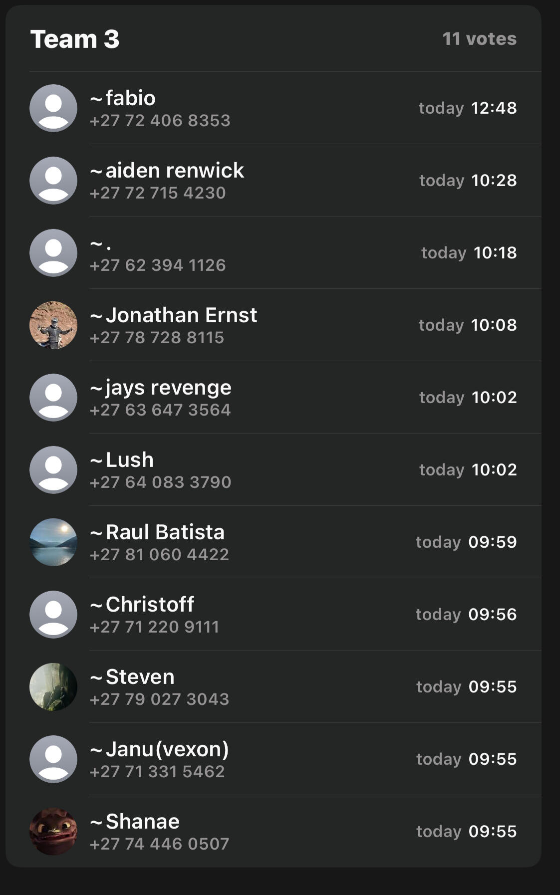 A minimum of THREE members is required.