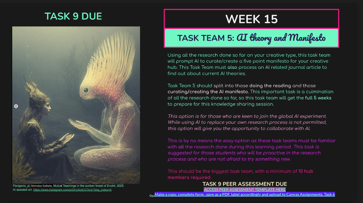 AI assisted art. https://www.instagram.com/p/DHyWpEGTlo3/?imgindex=6TASK 9 PEER ASSESSMENT DUE